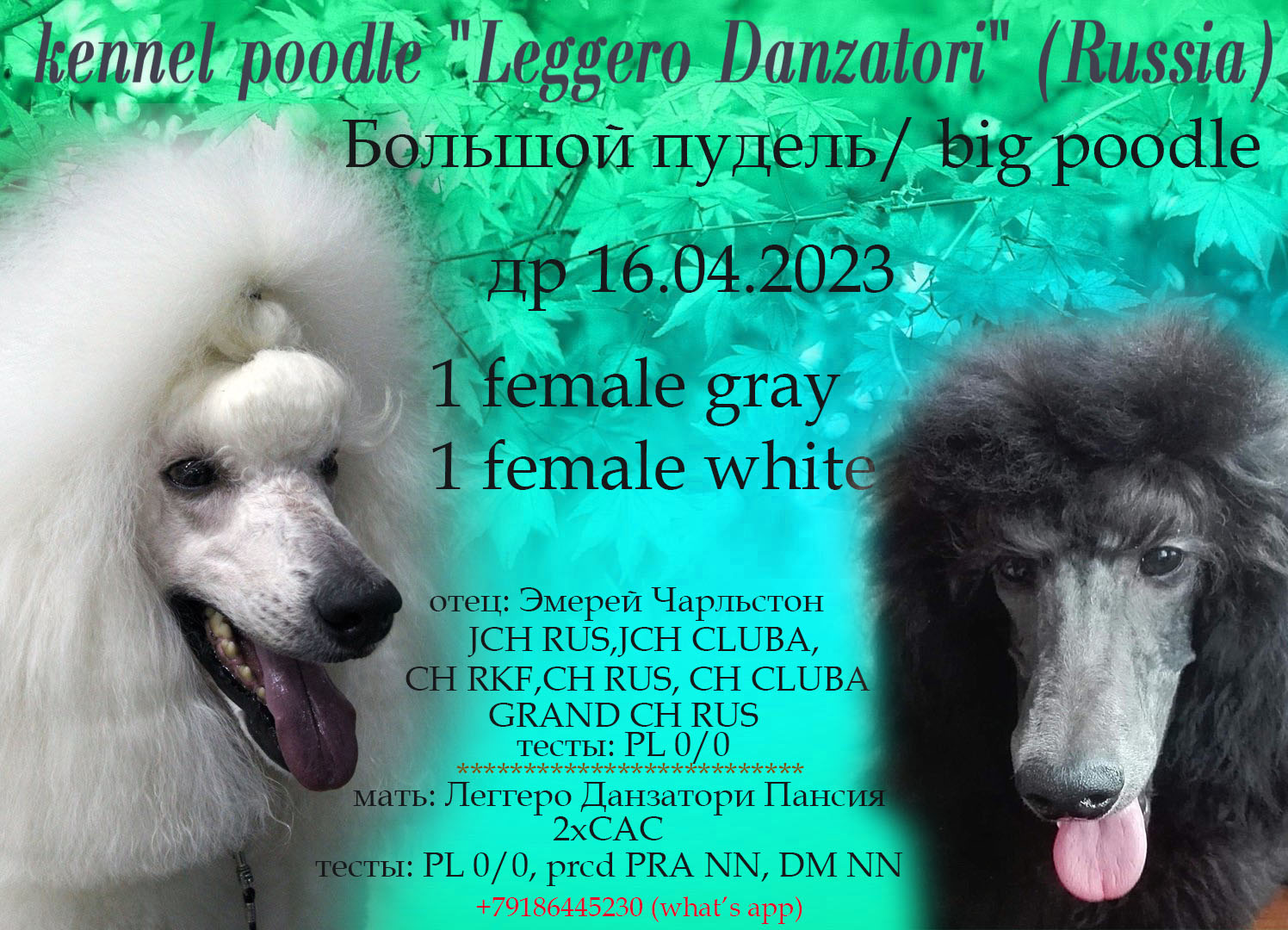16.04.2023 Большие пудели белые и серебро суки